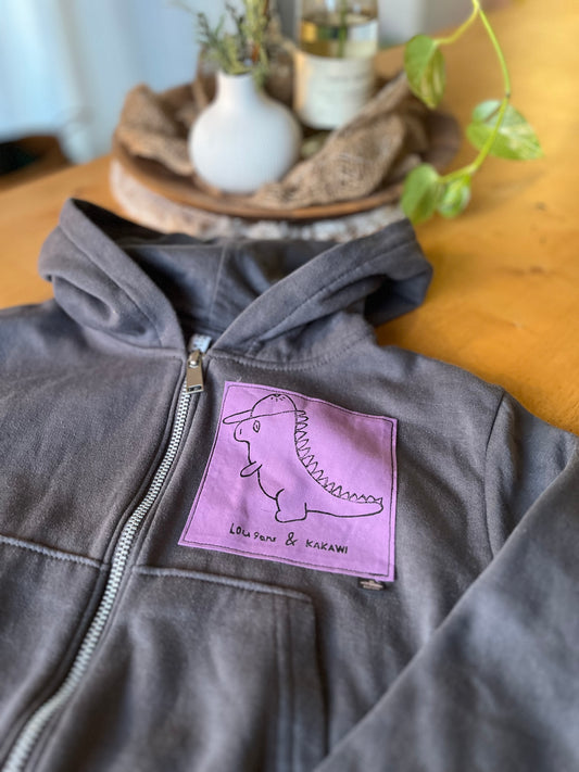 Nouvelle collection enfant - Des vêtements surcyclés, créés à partir du dessin de Lou, 9 ans, gagnant du concours de dinosaures ! Parce que les dinos, c’est cool, mais être éco-responsable, c’est encore mieux. Pour les petits aventuriers qui aiment jouer… sans polluer !