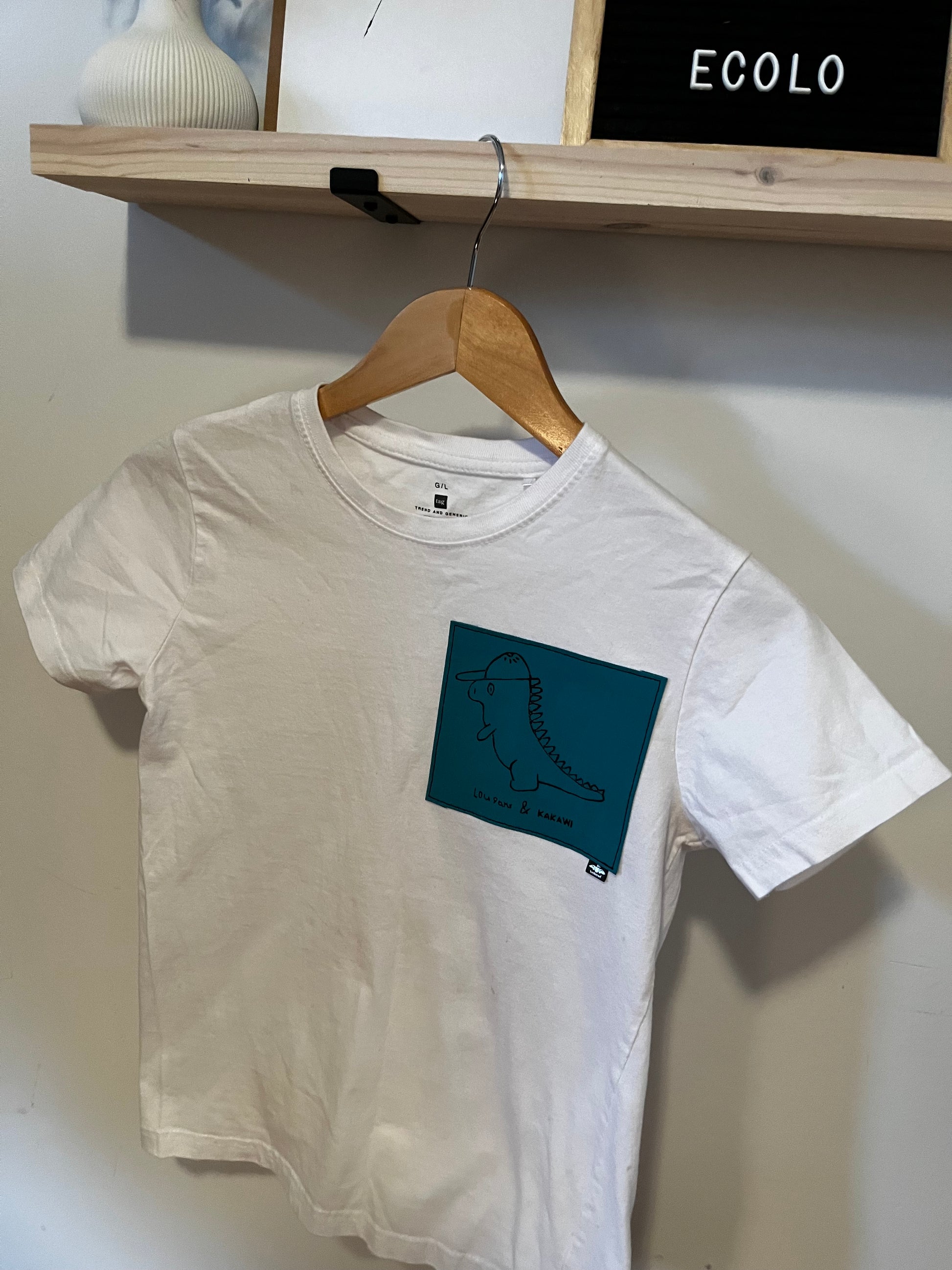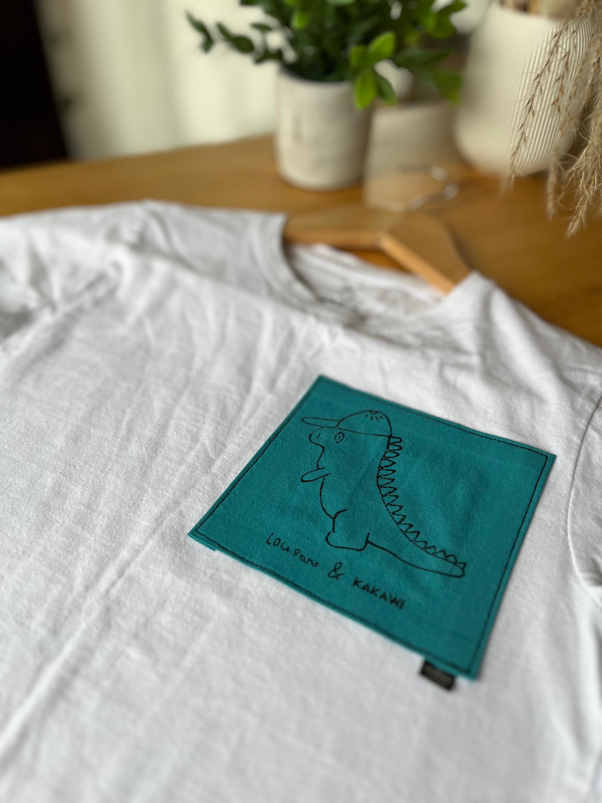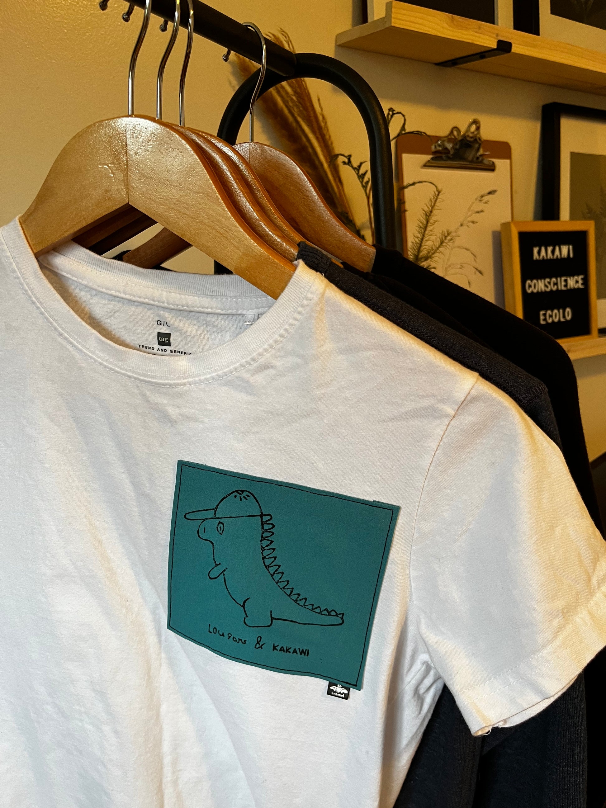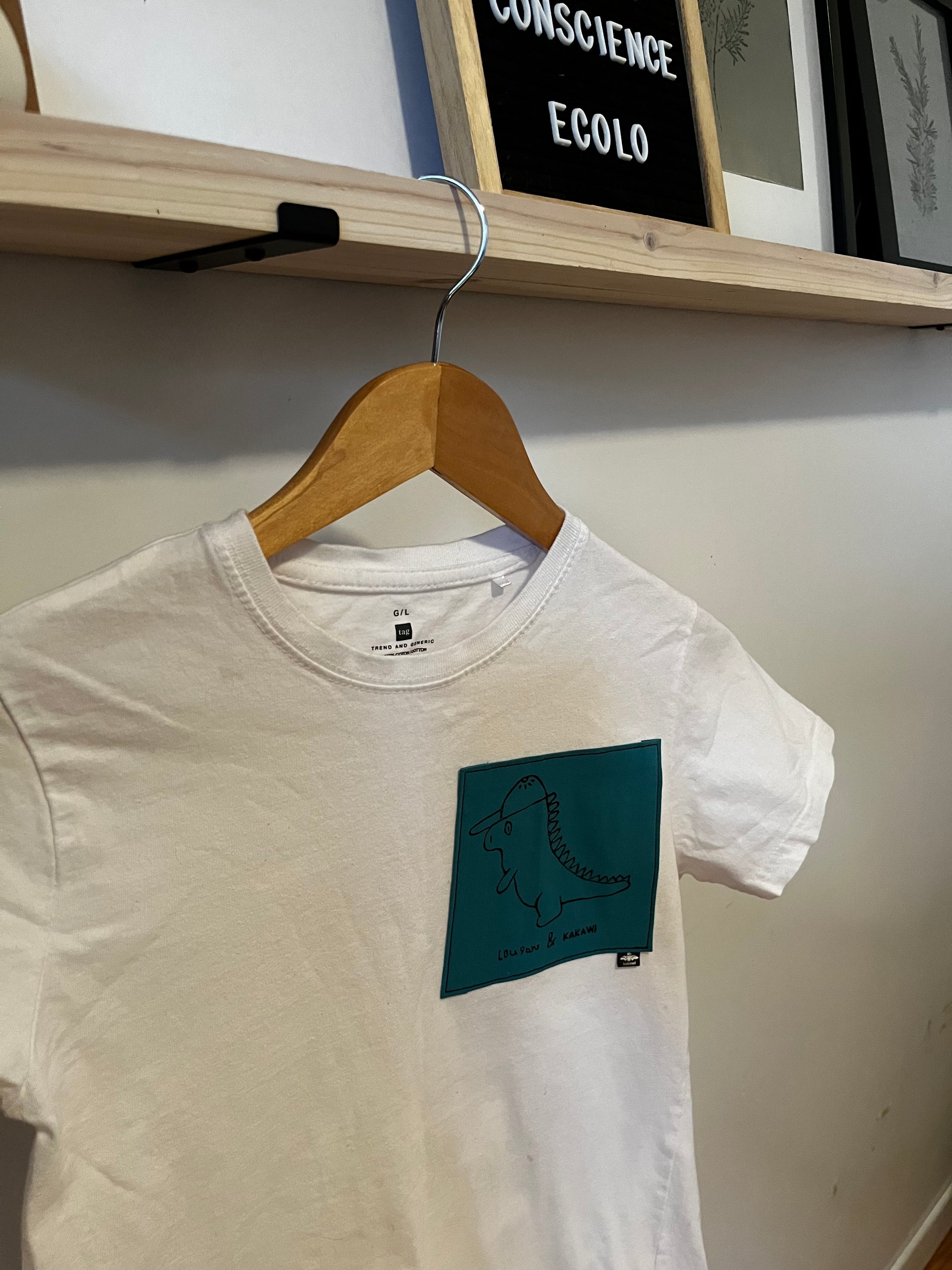 Après une compétition complètement «RAWR», c’est le dessin de Lou qui remporte la palme ! Grâce à son talent exceptionnel, son dinosaure a pris vie sur nos vêtements surcyclés de la nouvelle collection pour enfants !