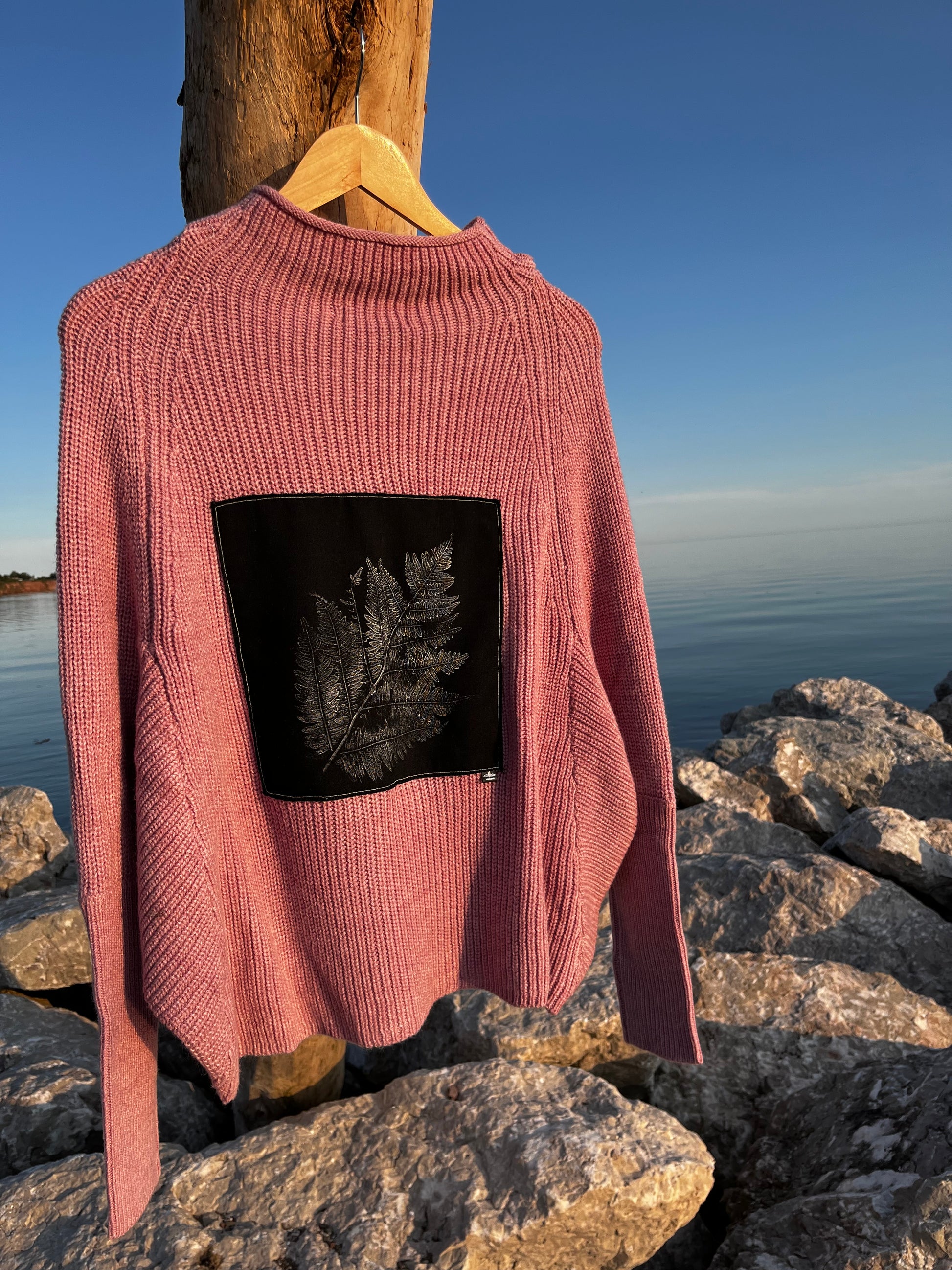 Tricot rose « fougère » x-large