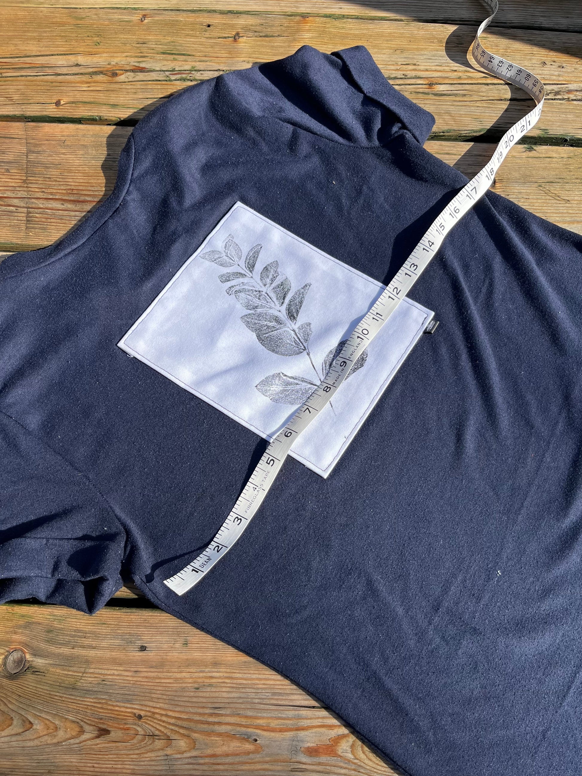 D’abord et avant tout, petit rappel amical, comme il s’agit d’un vêtement surcyclé, celui-ci a déjà une histoire bien à lui, il a fort probablement déjà vécu l’eau chaude, l’eau froide, le soleil et plus encore. Donc, la grandeur sur l’étiquette, demeure un indicateur, mais pas l’outil le plus précis. C’est pour cette raison que tu trouveras un ruban à mesurer sur quelques photos, afin de t’aider dans ton magasinage.