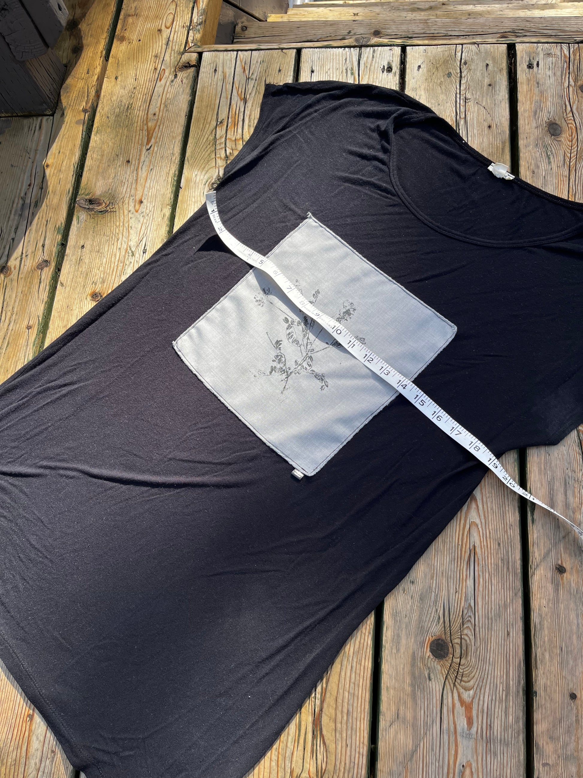 D’abord et avant tout, petit rappel amical, comme il s’agit d’un vêtement surcyclé, celui-ci a déjà une histoire bien à lui, il a fort probablement déjà vécu l’eau chaude, l’eau froide, le soleil et plus encore. Donc, la grandeur sur l’étiquette, demeure un indicateur, mais pas l’outil le plus précis. C’est pour cette raison que tu trouveras un ruban à mesurer sur quelques photos, afin de t’aider dans ton magasinage.